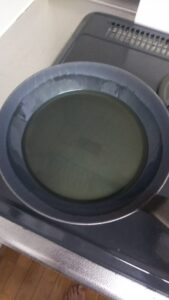 炒め終わったら野菜くずを捨て、一度たわしと水のみでざっとこすり洗いします。※洗剤は使わないこと!